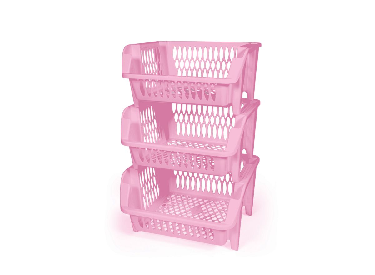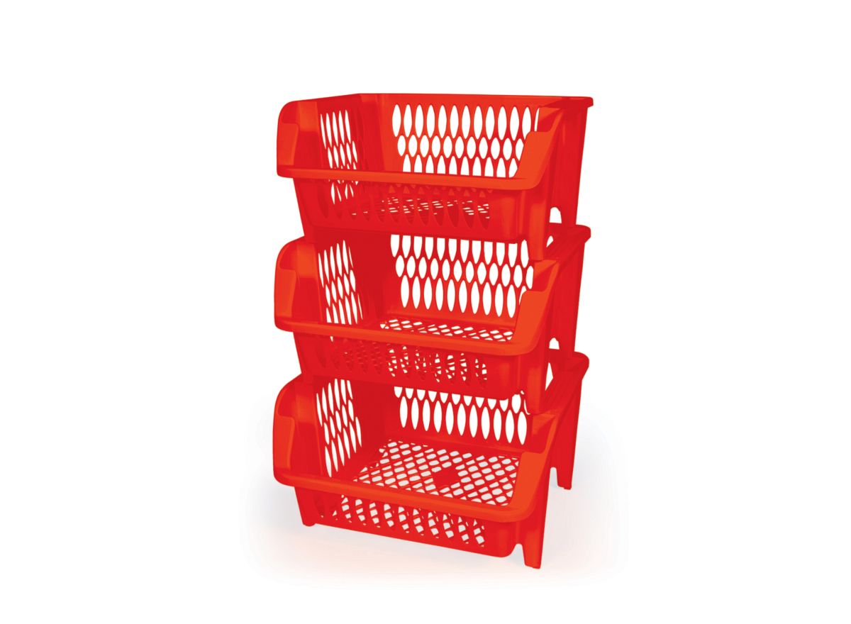 Tidy up any space with this smart, stackable storage rack. Each ventilated basket keeps contents visible and aerated, while the open-front design lets you grab items without unstacking. Made from sturdy, easy-to-clean plastic with smooth edges and wide side handles, it’s built for everyday use in kitchens, pantries, offices, shops, and kids’ rooms. Why you’ll love it Modular, stackable baskets save floor and counter space Open-front access for quick loading and unloading Ventilated lattice keeps produce and packaged goods fresh Wide, easy-grip handles for safe lifting and carrying Durable, lightweight, and simple to wash and wipe dry Works as a standalone bin or as a multi-tier rack Available in multiple elegant colors to match your décor Suggested uses Fruits & vegetables, snacks, spice refills, cleaning supplies, toiletries, toys, stationery, and more—your everyday “all-rounder” organizer.